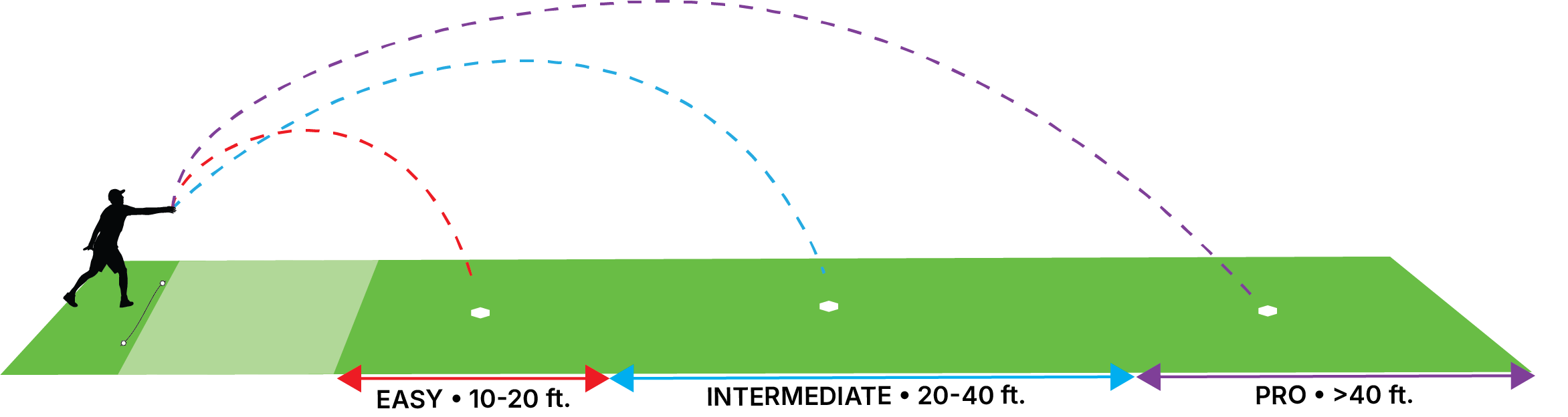 Get within the distance of The Rope to the Jack in as few throws as possible. 1pt. per throw. Low score after 9 FRAMES wins.