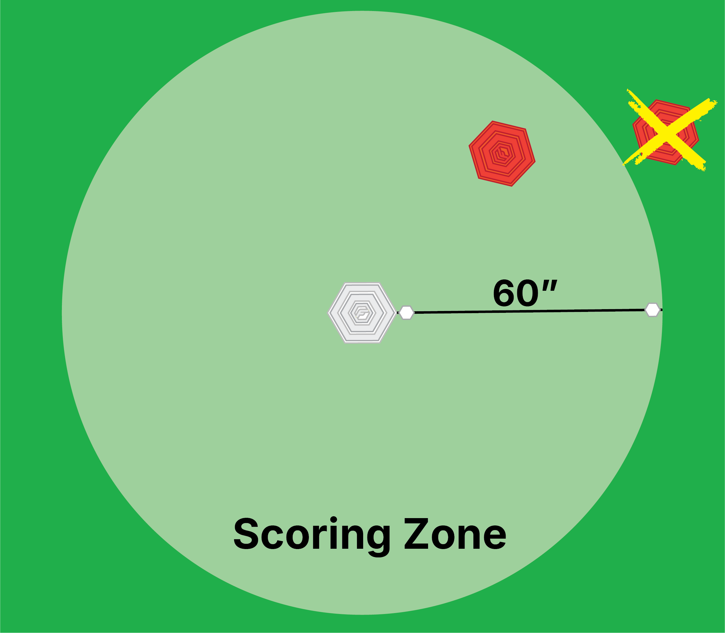To be eligible to score, a flab must land within the distance of the Tie Breaker Tool (60").